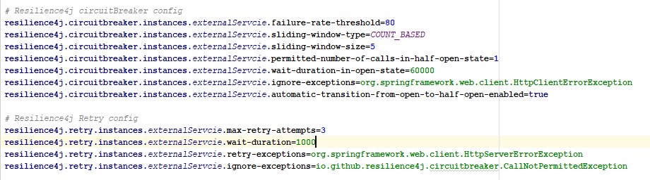- When said number of calls to external service are failed then Resilence4J opens circuit between Service & HTTP Client.
